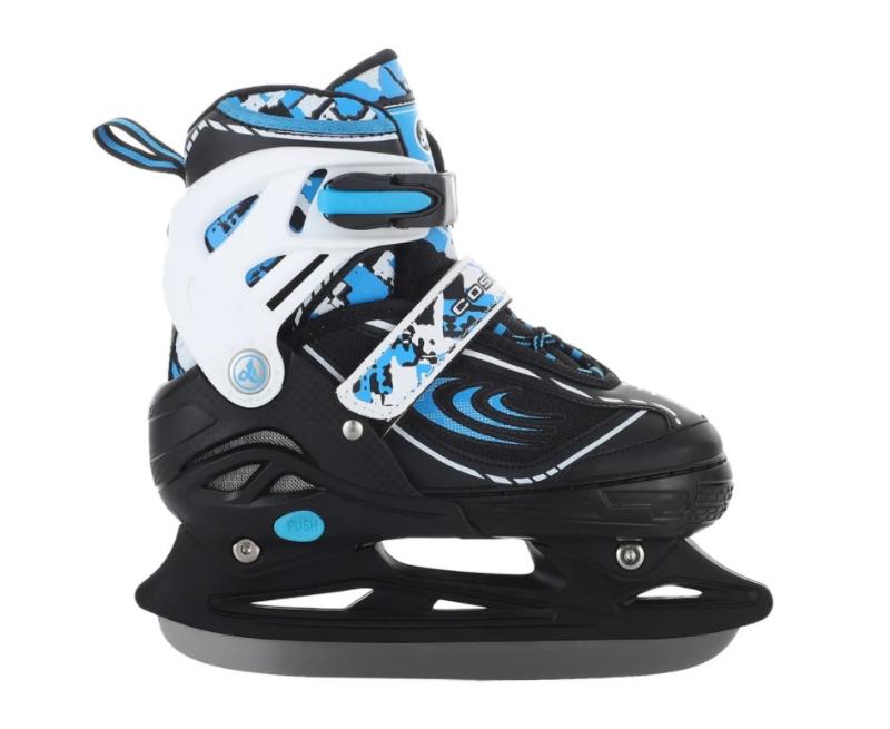 Высококачественные современные коньки прекрасно подходят для взрослых и детей именно благодаря своей универсальной раздвижной конструкции с надежным кнопочным фиксатором. Раздвижной механизм позволяет настраивать коньки на 4 разных размера. Внешний ботинок коньков выполнен из морозостойкого высокопрочного пластика, имеет высокую степень устойчивости к износу и механическим повреждениям. Внутренний ботинок анатомической формы с мягкой стелькой из пеноматериала обеспечивает комфорт во время катания. Утеплитель из искусственного меха обеспечивает надежное сохранение тепла во время катания. Удобная система шнуровки с застежкой на липучке гарантирует крепкую посадку коньков на ноге. Высококачественное лезвие выполнено из нержавеющей стали. Которая отличается высокой прочностью, а также устойчивостью к коррозии. Коньки подходят для катания как на открытых, так и на крытых катках. Стильная расцветка в обязательно понравится как парням, так и девушкам, а также привлечет внимание окружающих.Особенности и преимущества: